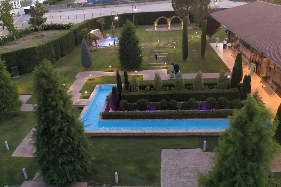 Una vez dentro del complejo por sus enormes cristaleras disfrutarás de luz natural y vistas fantásticas a la naturaleza, podrás elegir entre celebrar tu boda en el Salón Mudéjar; al que le corresponde un espectacular jardín con el mismo nombre o en el Salón Gaudí con su propio jardín, totalmente insonorizados con accesos y espacios totalmente independientes.